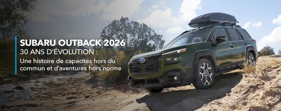 Le respect de votre vie privée est fondamental pour nous. Pour savoir comment Subaru Canada, Inc. protège les renseignements personnels que vous lui communiquez, veuillez consulter notre Politique de protection des renseignements personnels.